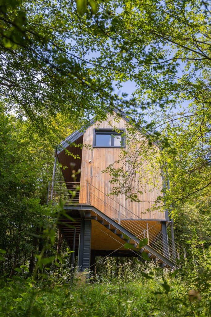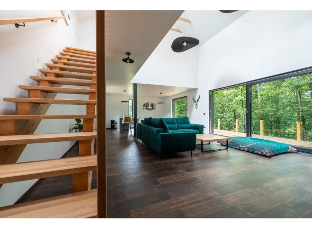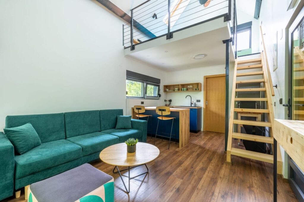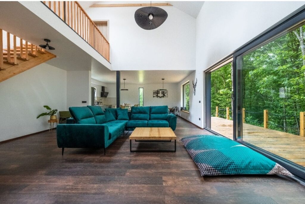 - Treehouses (Earth, Wind, Water): Each treehouse, inspired by the elements of nature, features a cozy living space, a fully equipped kitchen, a bathroom, and a terrace with stunning forest views. Each house accommodates two participants, with individual beds to ensure privacy and comfort. Sustainability is at the core of their design, with eco-friendly systems for cooling, heating, and waste management.